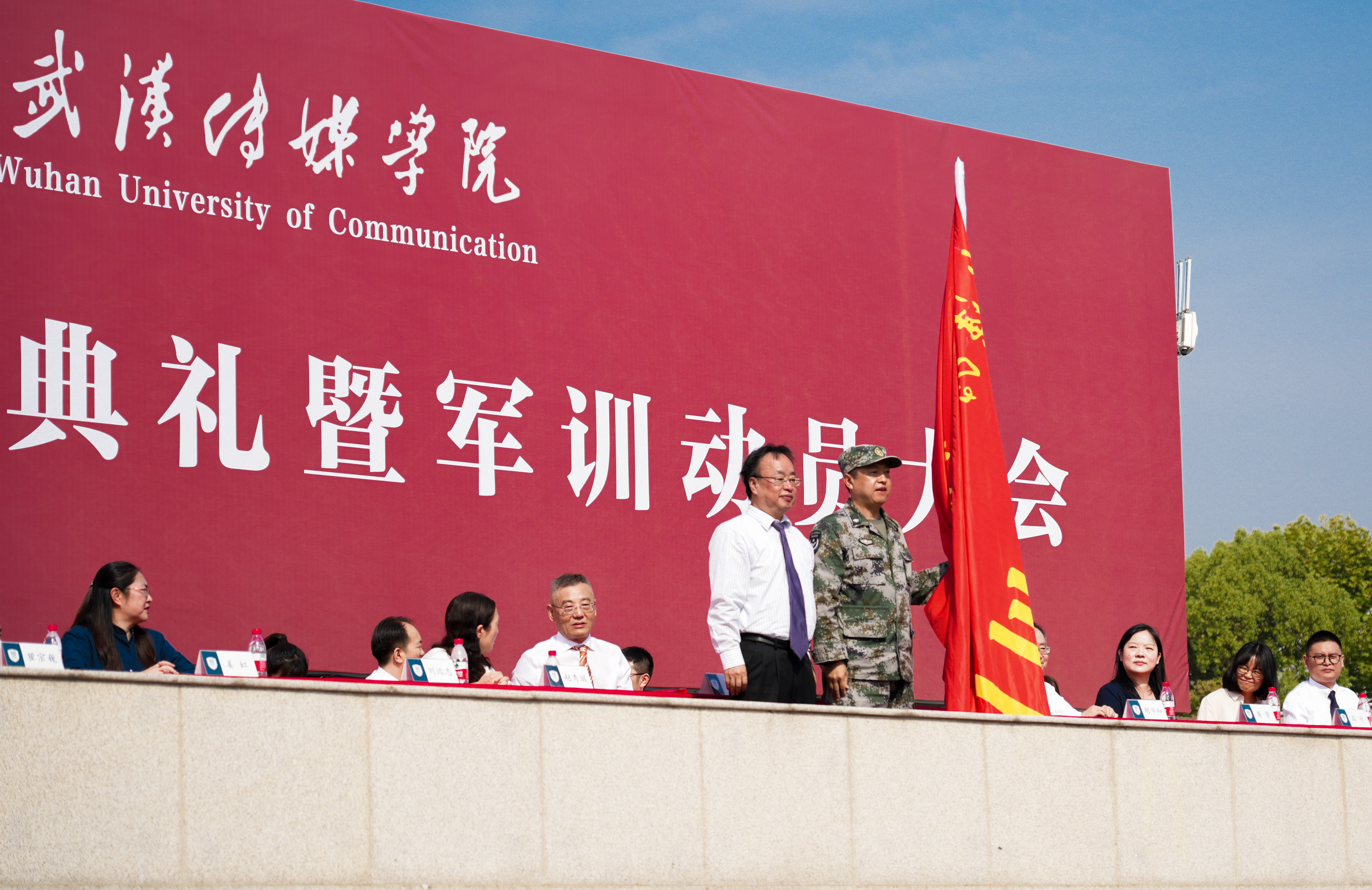 最后,由党委书记郭新力代表学校为军训团授团旗。我们特别聘请武昌职业学院教官帮助我们完成军训任务,各个队伍在教官的带领下有序地前往训练场地,为期10天的新生军训也正式拉开帷幕。