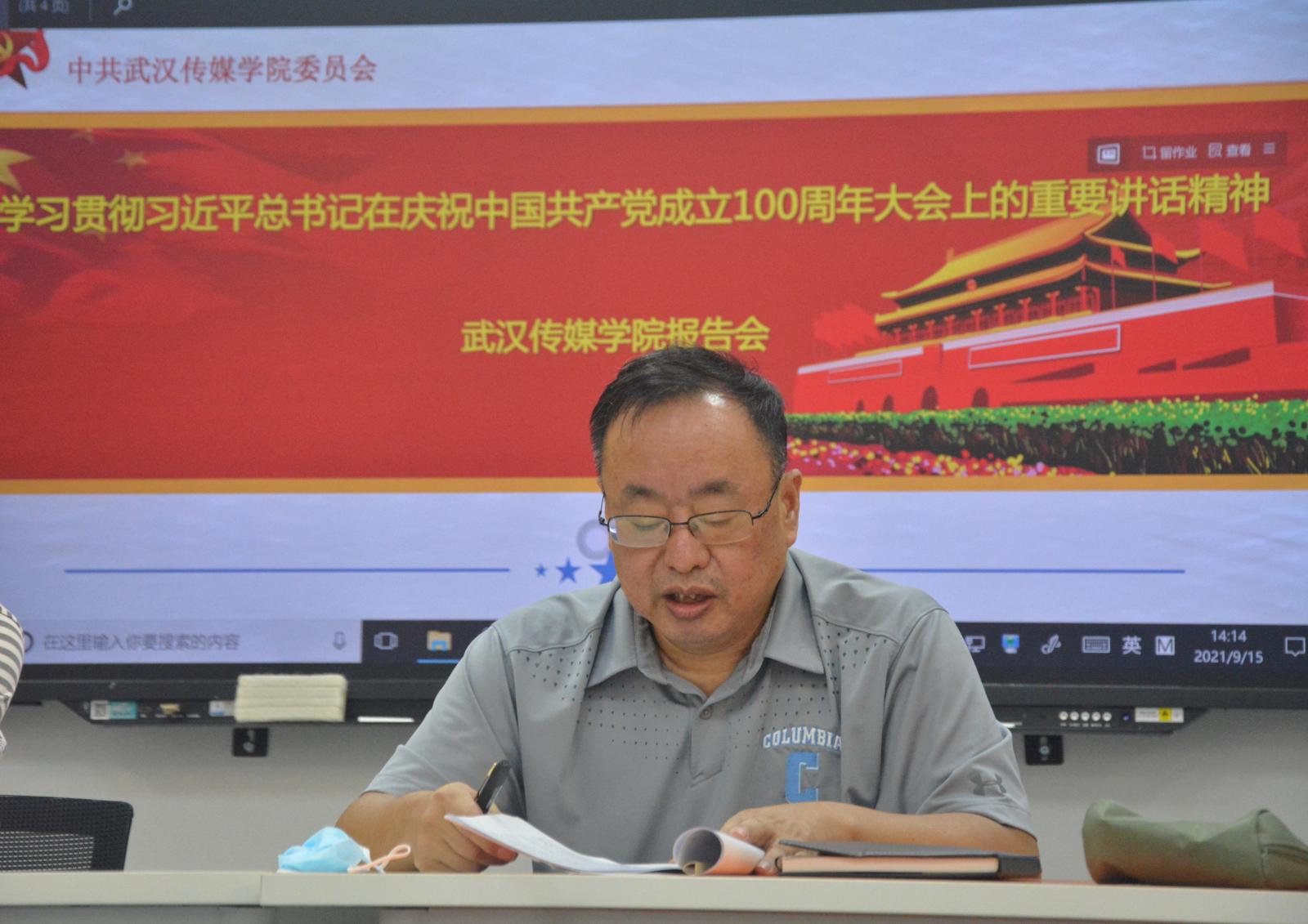 (武传新闻网讯)9月15日,我们举行党委理论学习中心组(扩大)学习会专题学习 “七一”重要讲话精神。校党委书记郭新力作学习“七一”重要讲话精神专题辅导报告。校党理论学习中心组全体成员,各党总支部书记,直属党支部书记,教师党支部书记及学生党支部书记参加此次学习。校党委副书记、常务副校长宗微主持会议。