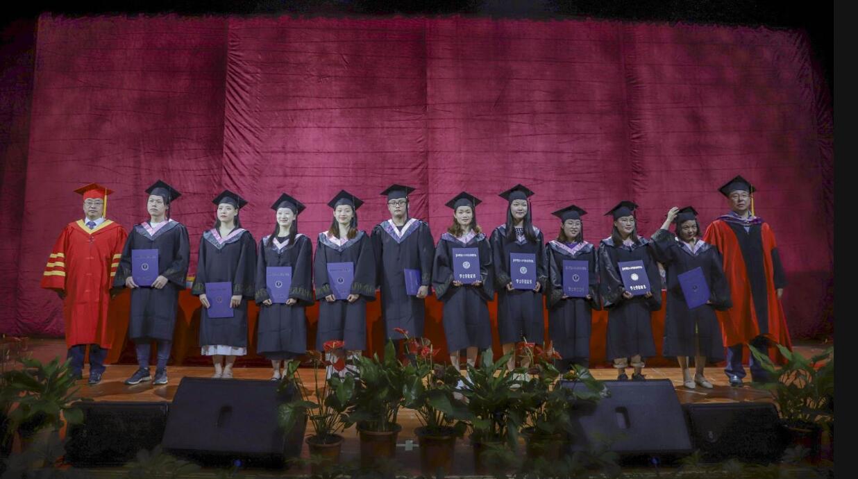党委副书记余建军宣读了2019届优秀毕业生表彰文件及2019届毕业生学士学位获得名单。165名学生获得“优秀毕业生”荣誉称号,1967名本科毕业生获学士学位。主席台上,10位导师为“优秀毕业生”代表颁发荣誉证书、拨穗并授予学位证书。