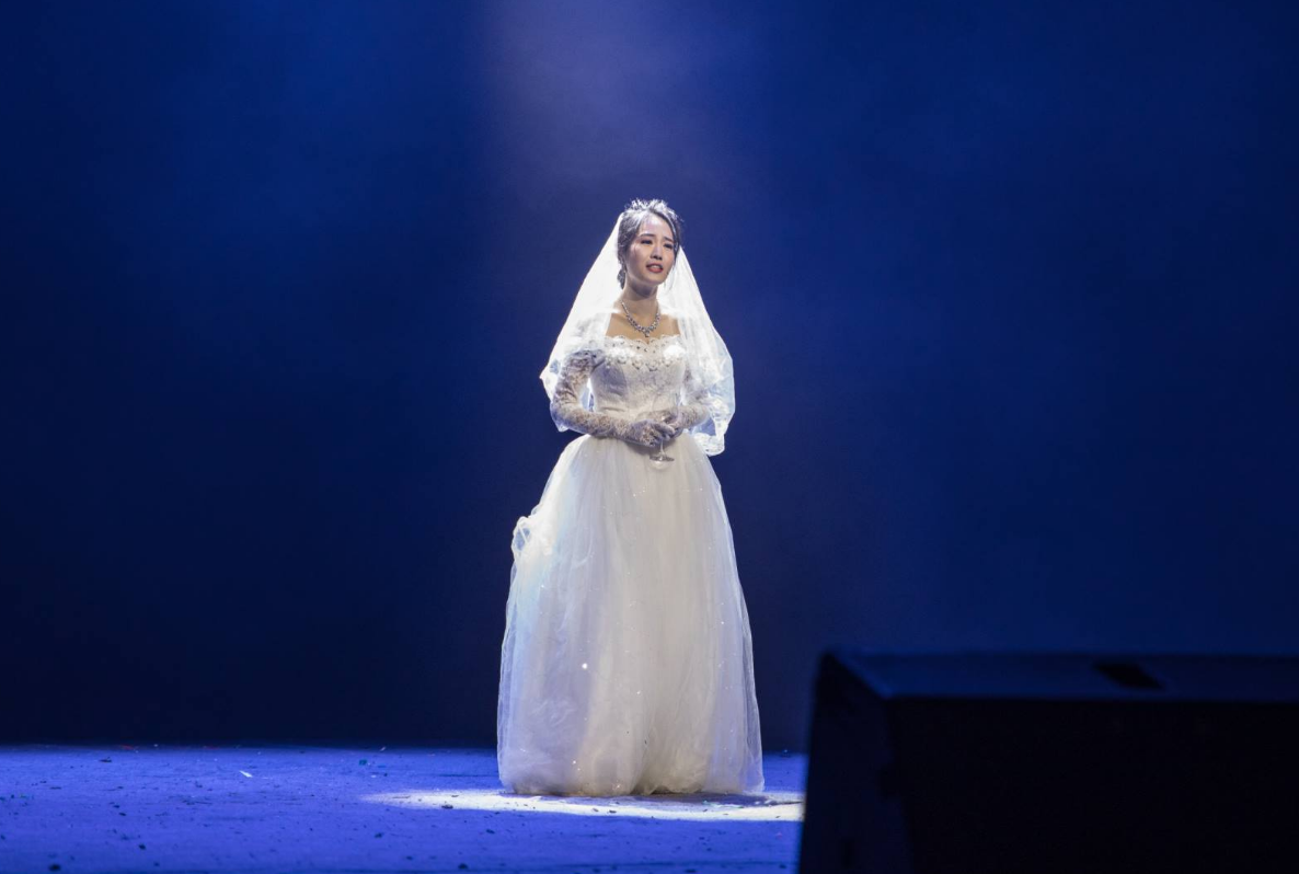 话剧《阮玲玉》演绎了阮玲玉经历了三段爱情后,在极度压抑下香消玉殒的经典片段。剧尾,阮玲玉的饰演者、播音主持艺术学院系主任张新身着白色婚纱席地而坐,一段平静诉说的独白后仰头饮酒死去,重现了阮玲玉临死前的凄美场景,给观众留下了深刻的印象。该剧导演、2015表演专业学生程进介绍,从暑假开始筹备话剧,为更完美地诠释角色,三次更换饰演阮玲玉丈夫唐文山一角。