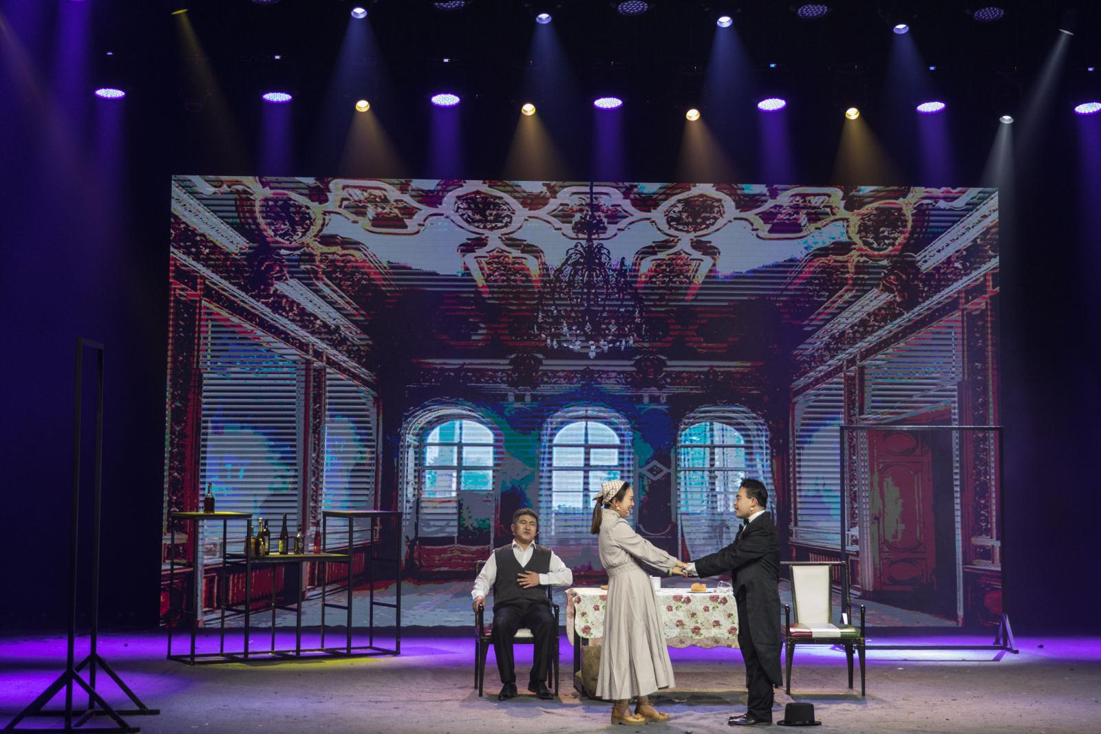 喜剧《求婚》由教师王龙、费燕琴、肖帅饰演,剧中洛莫夫和娜塔丽亚本就是多年邻居,彼此有好感,求婚应是一件喜事,却因两人争强好胜的性格使整个事件变得笑料百出。饰演洛莫夫的王龙在争吵中,时而跳脚、时而捂心脏的滑稽表演,引得台下笑声连连。“《求婚》是一篇俄国喜剧,演员台词很难记,为此我们经常排练到晚上十二点,甚至开场30分钟前,大家还在对台词。”王龙说道。