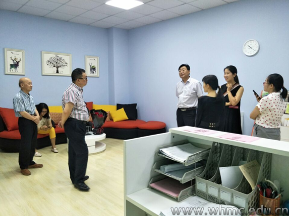 武传新闻网讯(文、图/通讯员李霞倪聪)6月5日上午,武汉商贸职业学院副校长钟克喜、学工部部长张一鸣、心理中心主任张掌然、财务处处长李枫、资产处处长张枳等一行10人前来我们大学生心理健康教育中心参观交流。