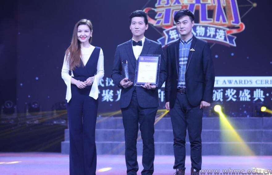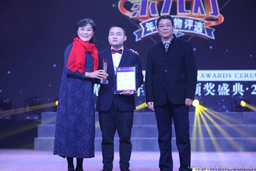 武汉视飞科技公司总裁范洪涛、新闻传播学院院长助理赵倩上台为第六组年度人物颁奖。一上台,赵老师调侃范总“胡子好看”,范总也幽默回应“是为盛典精心打扮贴的假胡子”。新闻传播学院学生周玉华成为第六位获奖者,曾在澎拜新闻实习的她,在台上讲述了独自追逐新闻梦想的经历。