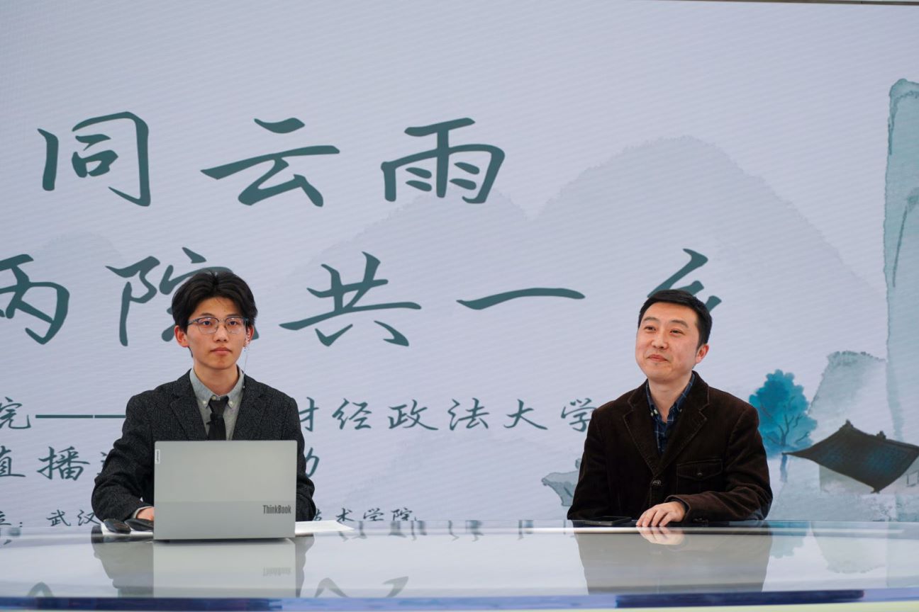 武传新闻网讯(记者 刘静 摄影 孟浩宇)4月14日下午2时,我们传媒技术学院联合中南财经政法大学新闻与文化传播学院一同举行线上直播连线活动,并在学校融媒体演播厅进行现场直播录制。