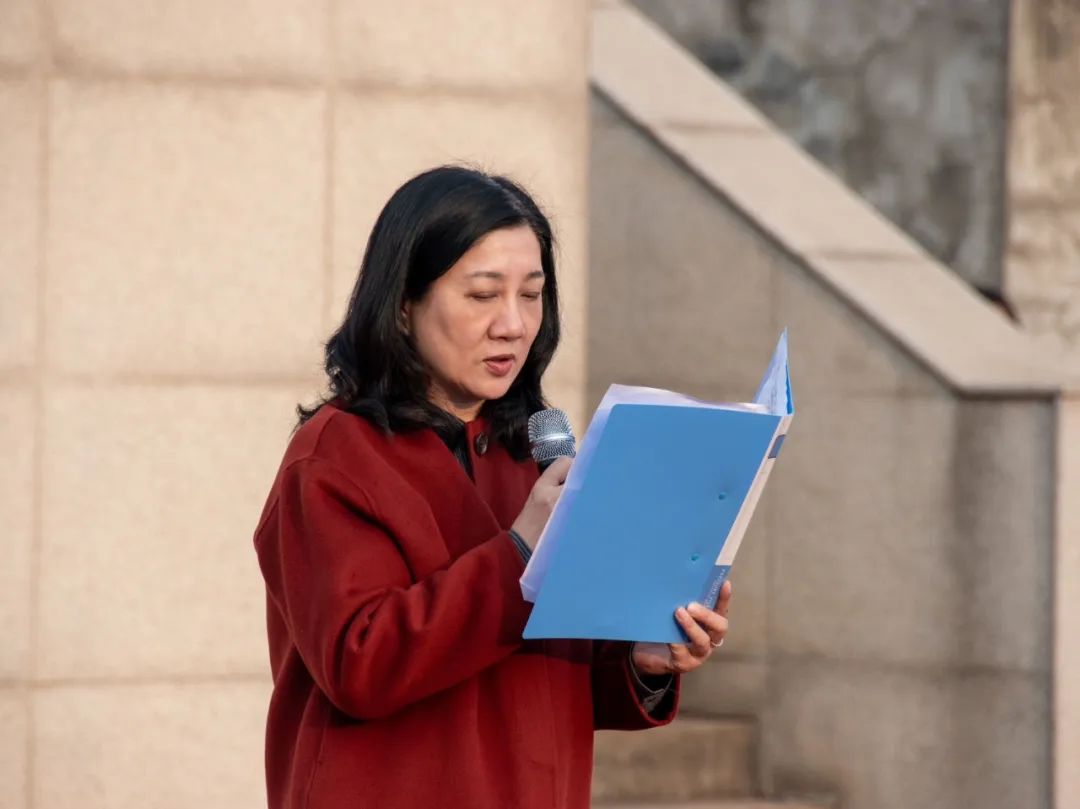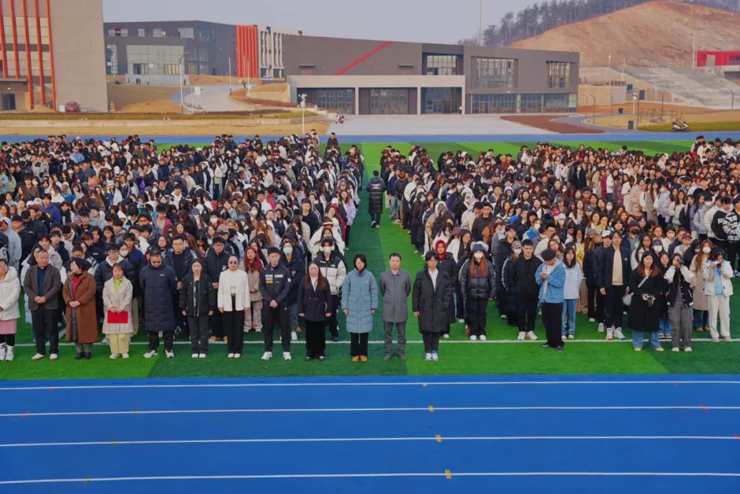 在大悟校区,副校长范纯新向同学们送上了新学期的祝福,并提出三点期望,一是让信仰之光照亮人生之路,二是让创新精神助力个人成长,三是让奋斗成为青春的亮丽底色。她勉励同学们怀揣梦想,肩负使命,在青春的赛道上奋力奔跑。播音主持艺术学院学生代表章钦媛分享了一些自我提升的经验,并鼓励同学们勇敢挑战自我、早日实现蜕变。
