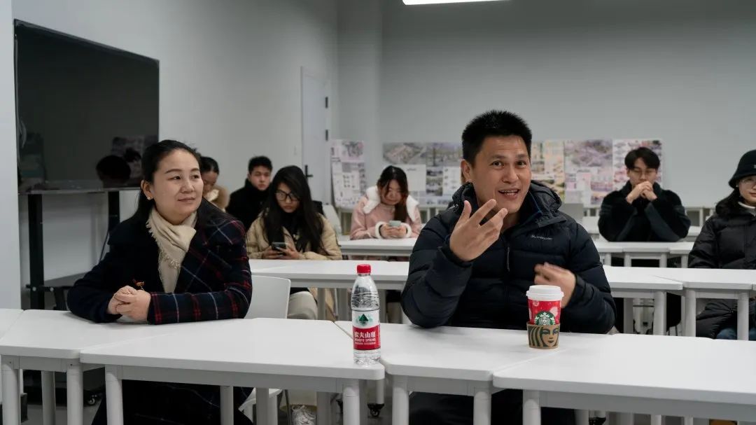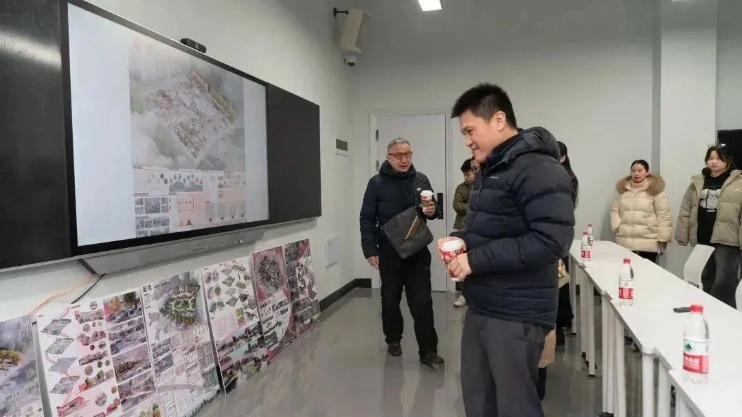 武传新闻网讯(通讯员 鲁天杰 刘伊婷)1月16日,我们设计学院2020级环境艺术设计专业的十多名学生带着原创设计的8幅作品,与来自新西兰的建筑设计师Logan进行学术交流。