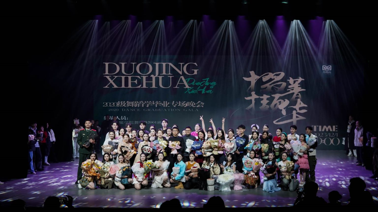 展演结束,现场观众纷纷登台,为此次晚会的参演毕业生献上捧花并合影留念。舞蹈B2001班班长何照昕也在采访中表示,感谢所有老师尽心竭力的栽培与付出,对于自己的未来,她希望自己能够继续站在舞台上闪闪发光,在自己正青春的时候拼搏奋斗,用最饱满的热情拥抱属于自己的明天。
