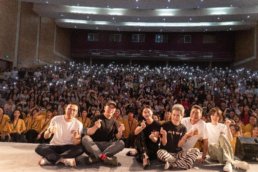 最后,在现场主持人的带领下,演播厅内再次响起了电影主题曲《爱》,主创同台下观众齐声合唱,此次主创交流分享会也随之进入尾声。