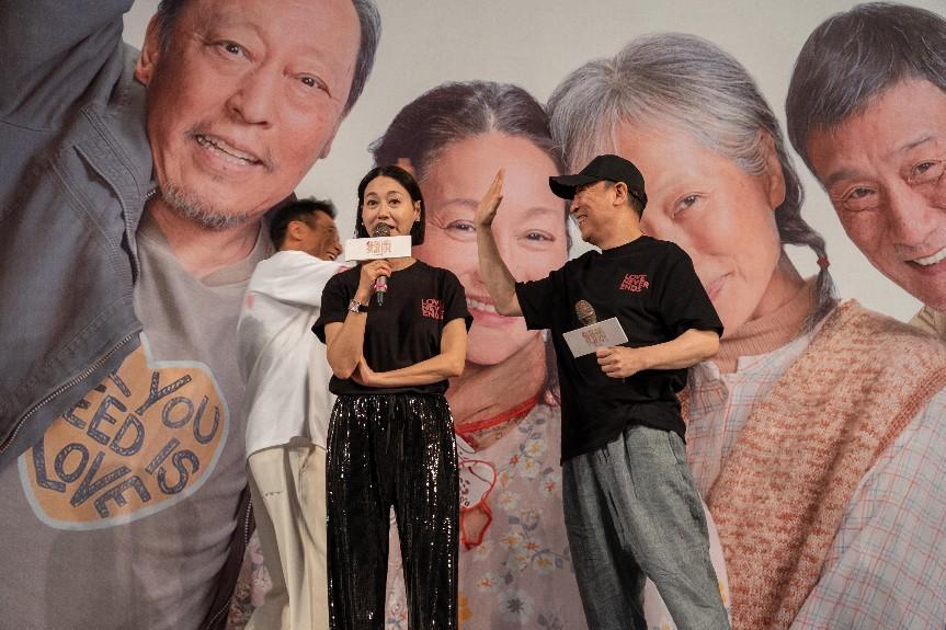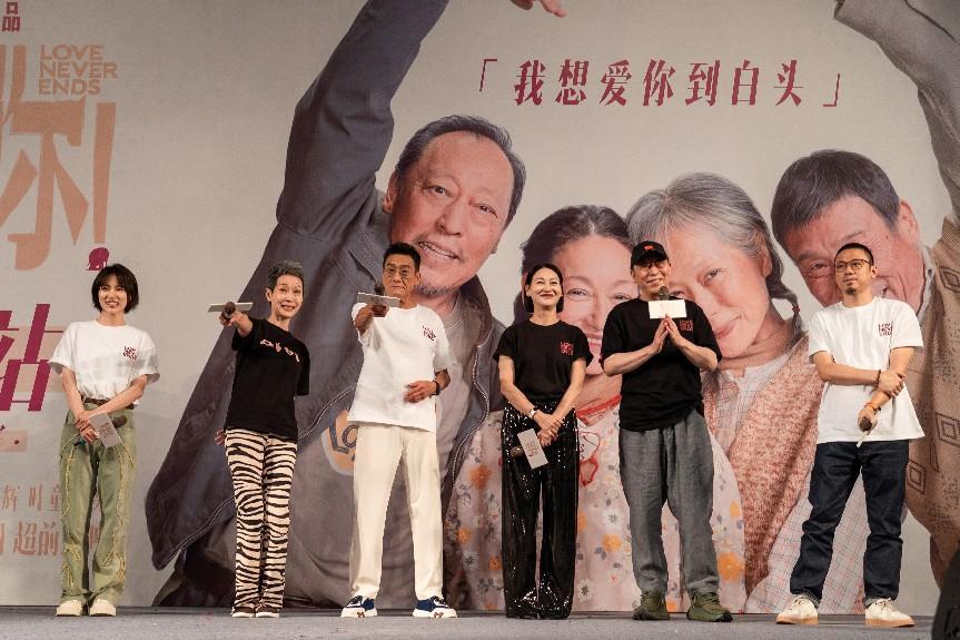 在观影过后,电影《我爱你!》六位主创人员登台与现场观众见面,并正式开始了此次交流会的分享。在被问及如何理解“黄昏之恋”时,惠英红表示,在当下这个社会里面有很多老年人都有一份属于他们自己的感情,他们也会有向往爱情的时候和对爱情的热情,但是会碍于很多理由,不敢去勇敢地去面对。而作为演员的她,也在这份“爱”的包围里感触颇多,出演这部戏也让她体会到了在爱情面前是不分任何年龄层段的,也没有任何阻碍可以阻挡爱情。