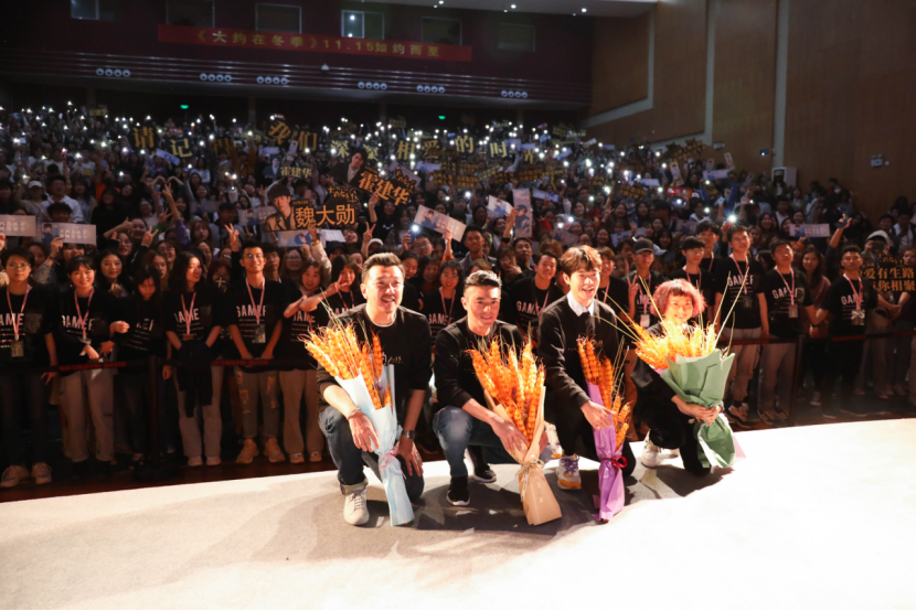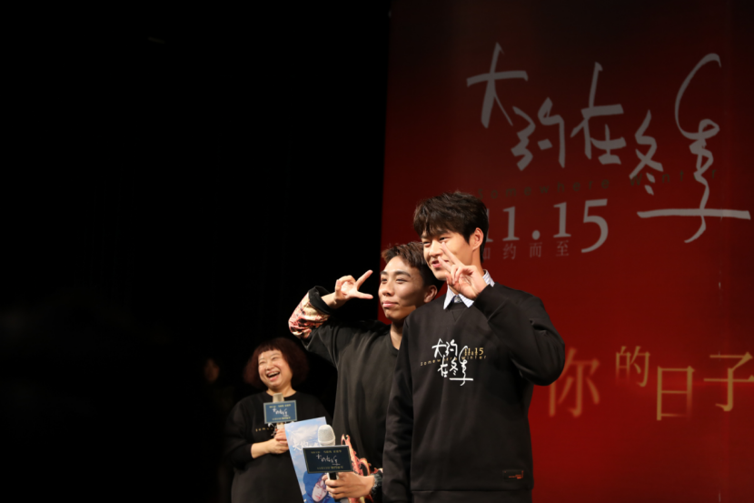 活动最后,导演王维明、编剧饶雪漫和演员霍建华、魏大勋与现场观众一同合唱歌曲《大约在冬季》,并与观众合影留念。据悉,电影《大约在冬季》将于11月15日在全国各大影院正式上映。