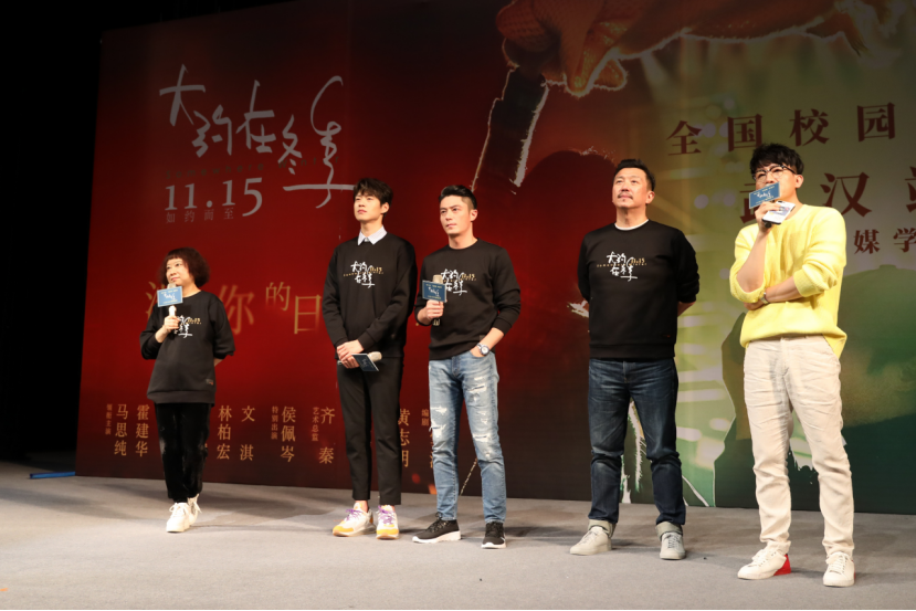 武传新闻网讯(文/记者 叶信乐 见习记者 李明月 蔡弘禧 图/摄影记者 卢丽雅)11月8日,电影《大约在冬季》校园超前观影暨主创交流分享会在我们凤凰演播厅举行。导演王维明、编剧饶雪漫、领衔主演霍建华、主演魏大勋与我们师生现场互动,分享电影创作的故事。