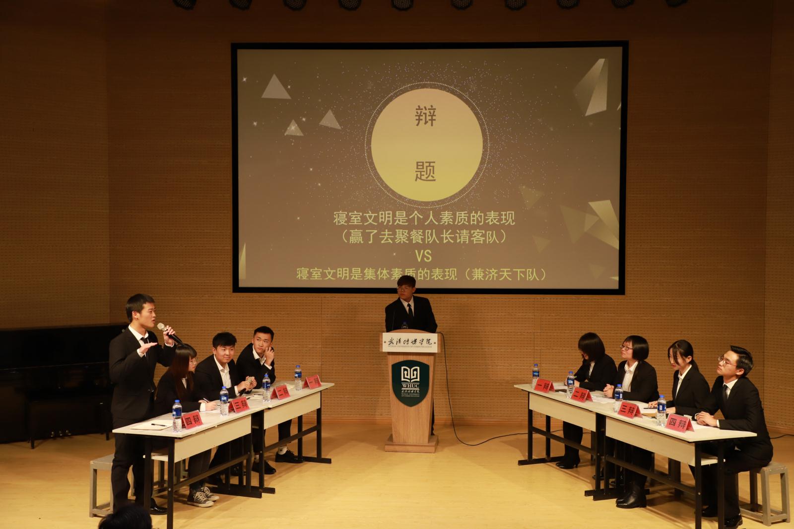 武传新闻网讯(文/见习记者 吕以涵 张小芳 图/摄影见习记者刘远洋 李浩天)12月13日晚,文化管理学院举办的新生辩论大赛决赛在圆形报告厅拉开帷幕,辩论赛以“寝室文明是个人素质的表现还是集体素质的表现”为主题,正反两队辩手在现场展开激烈角逐。