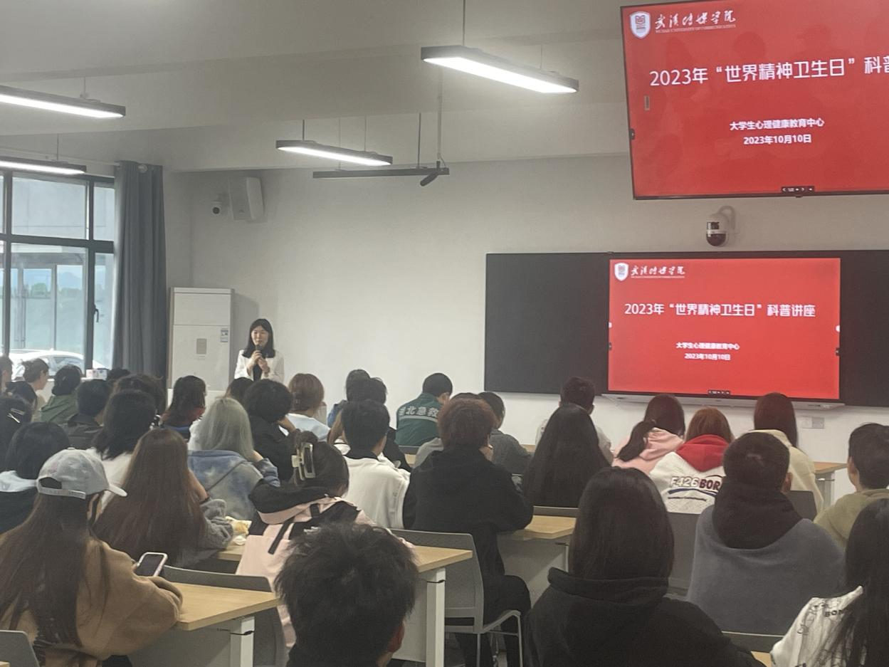 武传新闻网讯(通讯员 余宥依)为进一步提高我们师生对精神疾病的识别能力,普及相关精神卫生知识,我们心理中心于10月10日在大悟校区开展了 “10.10”世界精神卫生日科普讲座。