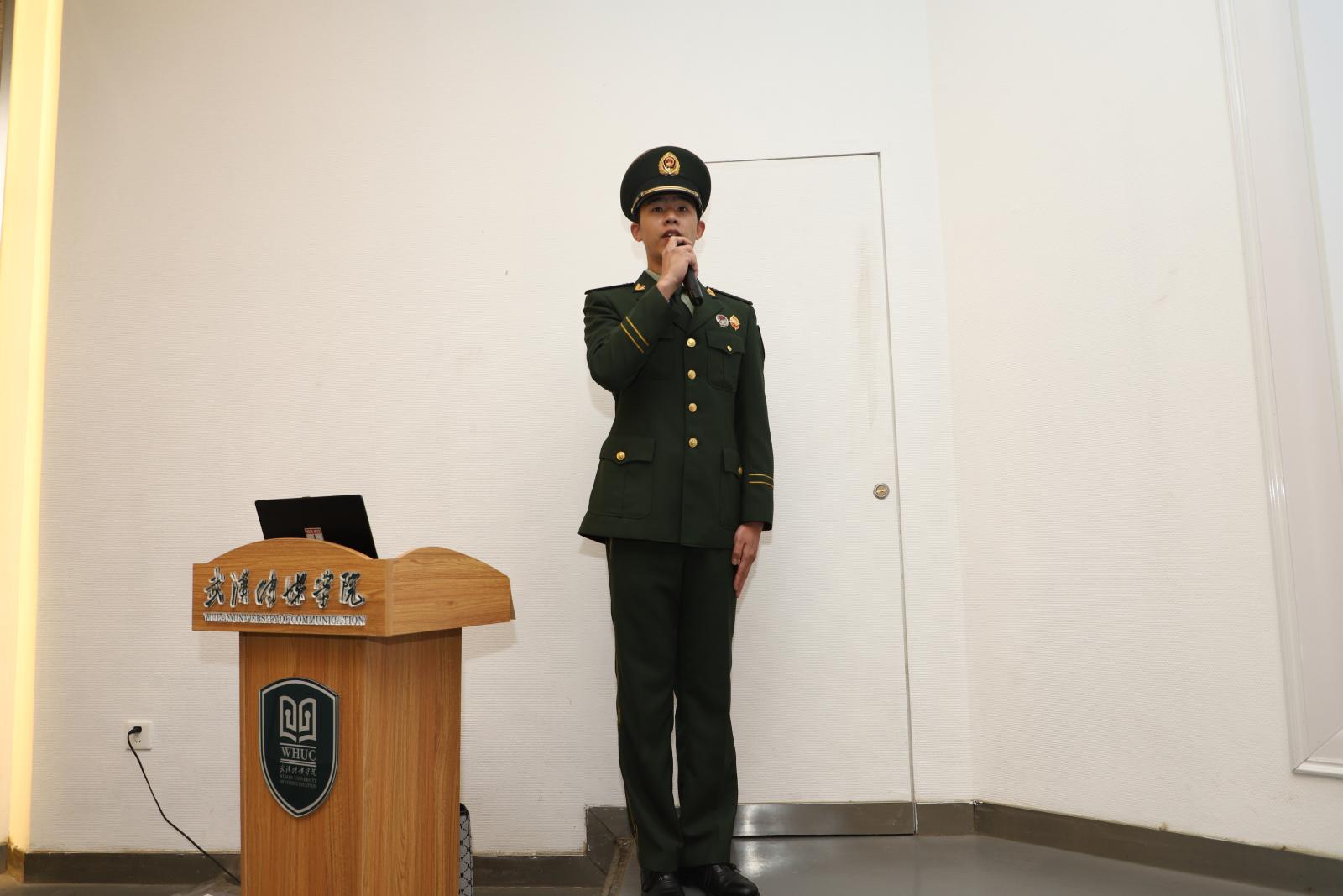 其后,来自播音主持艺术学院2018级的王昱杰同学发言,王昱杰同学向在场的领导们与同学们表达出了自己从小到大对军旅生活的强烈向往,并希望能够在今年加入中国军人的队伍,实现自己的梦。