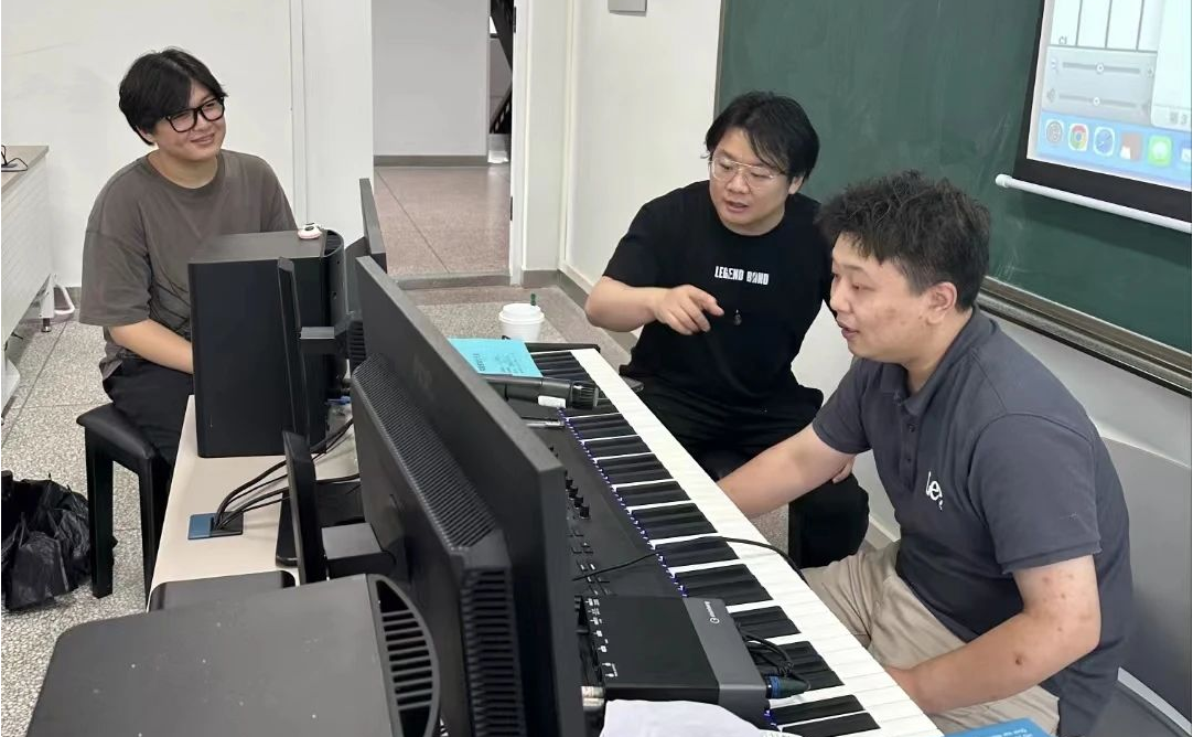 在原创音乐剧创作方面,刘可与在座教师进行了头脑风暴。针对剧本,他给出了大胆的建议,在音乐词曲创作与制作上也给予了大量的技术支持与引导、并现场编配,使得在场教师和学生都受益匪浅。