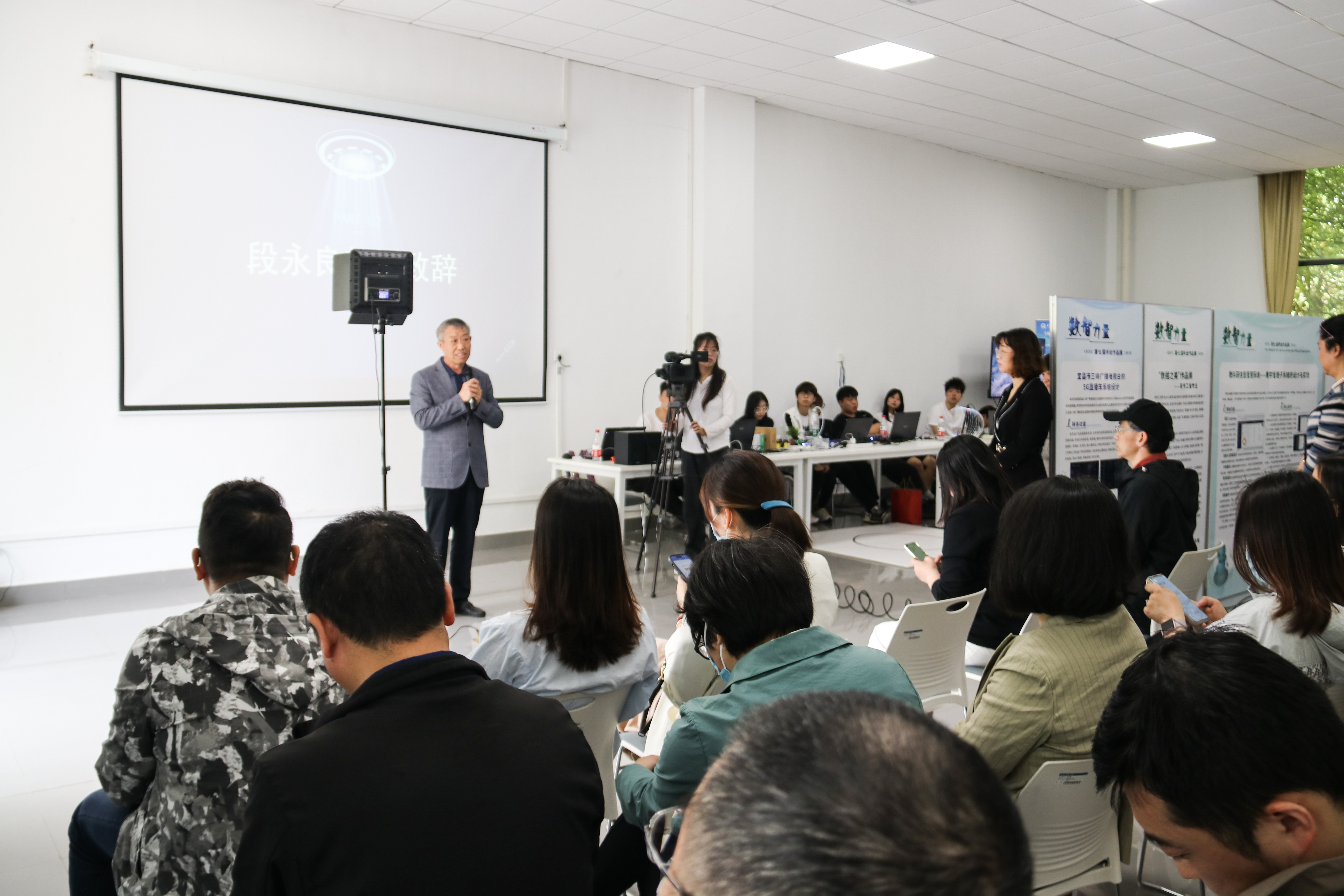 随后,传媒技术学院特聘专家段永良教授发表了讲话。他指出,本届作品展既体现了软件工程、电子信息工程和广播电视工程三个专业的不同特色与亮点;同时,在专业之间的交叉融合,也为实现全覆盖、促进学生的积极创造性做出了贡献,充分发挥了学生的才能。关于本届展览的创新性,段永良强调了一个“转”字。他表示,在党的二十大的倡导下,首先,要将技术成果转化为新生入学教育资源;其次,要转化为课程资源,走进课堂与实验室;最后,将技术成果融入横向项目实现市场转化。
