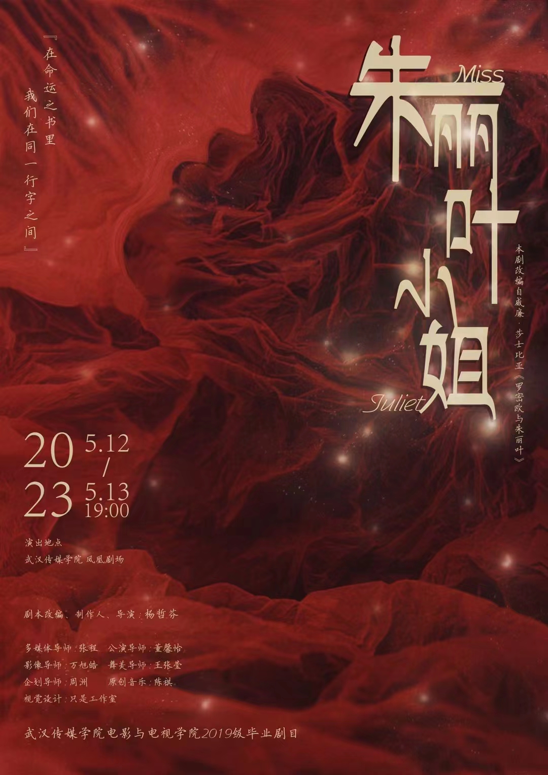 (武传新闻网讯 记者 王若汐 刘静 高瑜 王晋婉)5月12日至13日晚,我们电影与电视学院2019级毕业剧目《朱丽叶小姐》在校凤凰剧场正式上演。