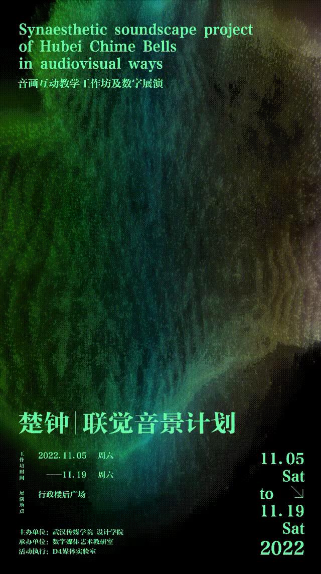 本次《楚钟:联觉音景计划》音画互动教学工作坊及展演活动,立足于荆楚文化资源和特色,挖掘荆楚文化的代表性元素——编钟,并用声音可视化的有效呈现形式,以数字技术转译“荆楚文化”。