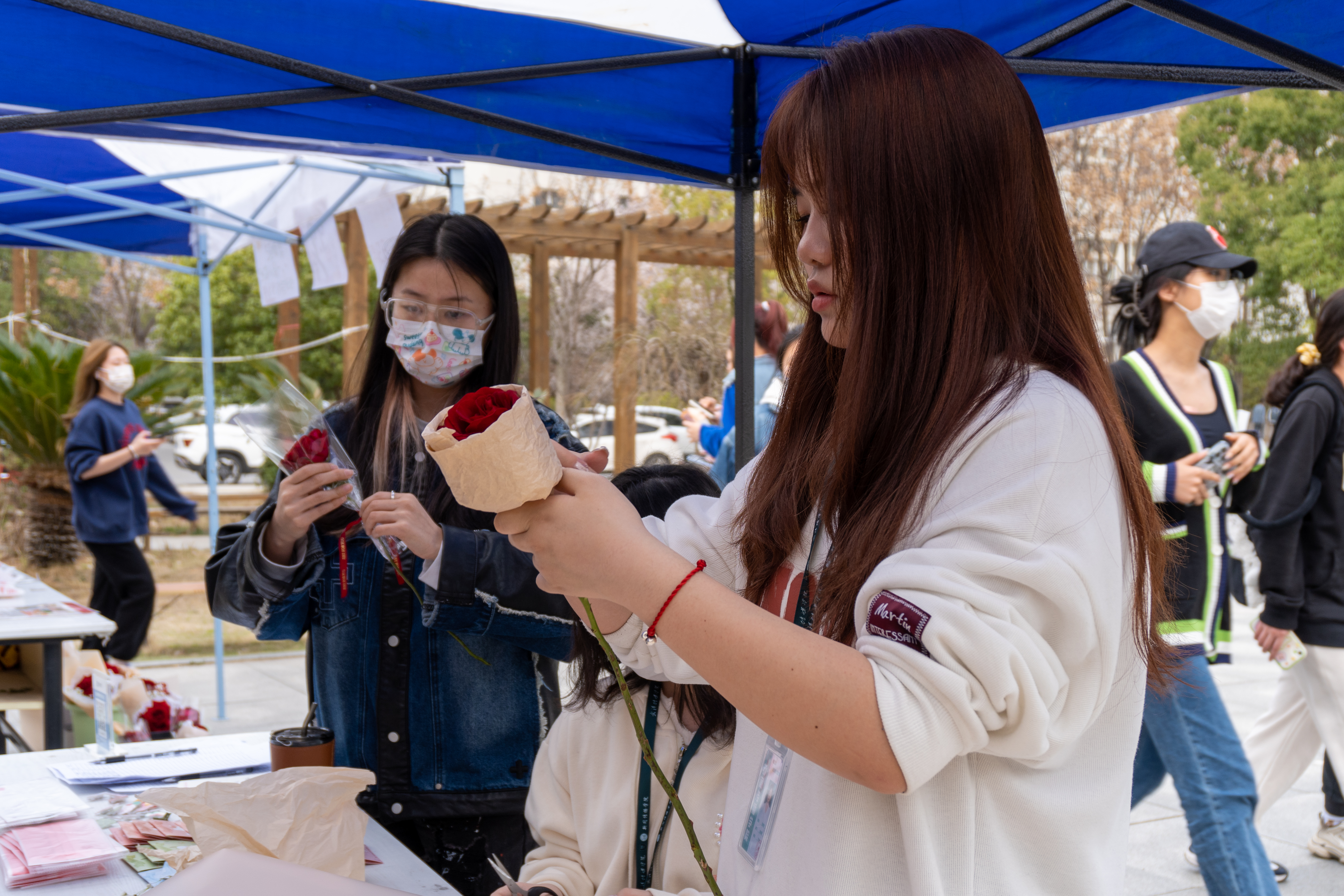 (武传新闻网讯 记者 陶明 江慕)3月7日上午,我们新闻传播学院学生会实践部与文体部联合举办的“新光芒计划”鲜花义卖公益活动于校博雅园开展。
