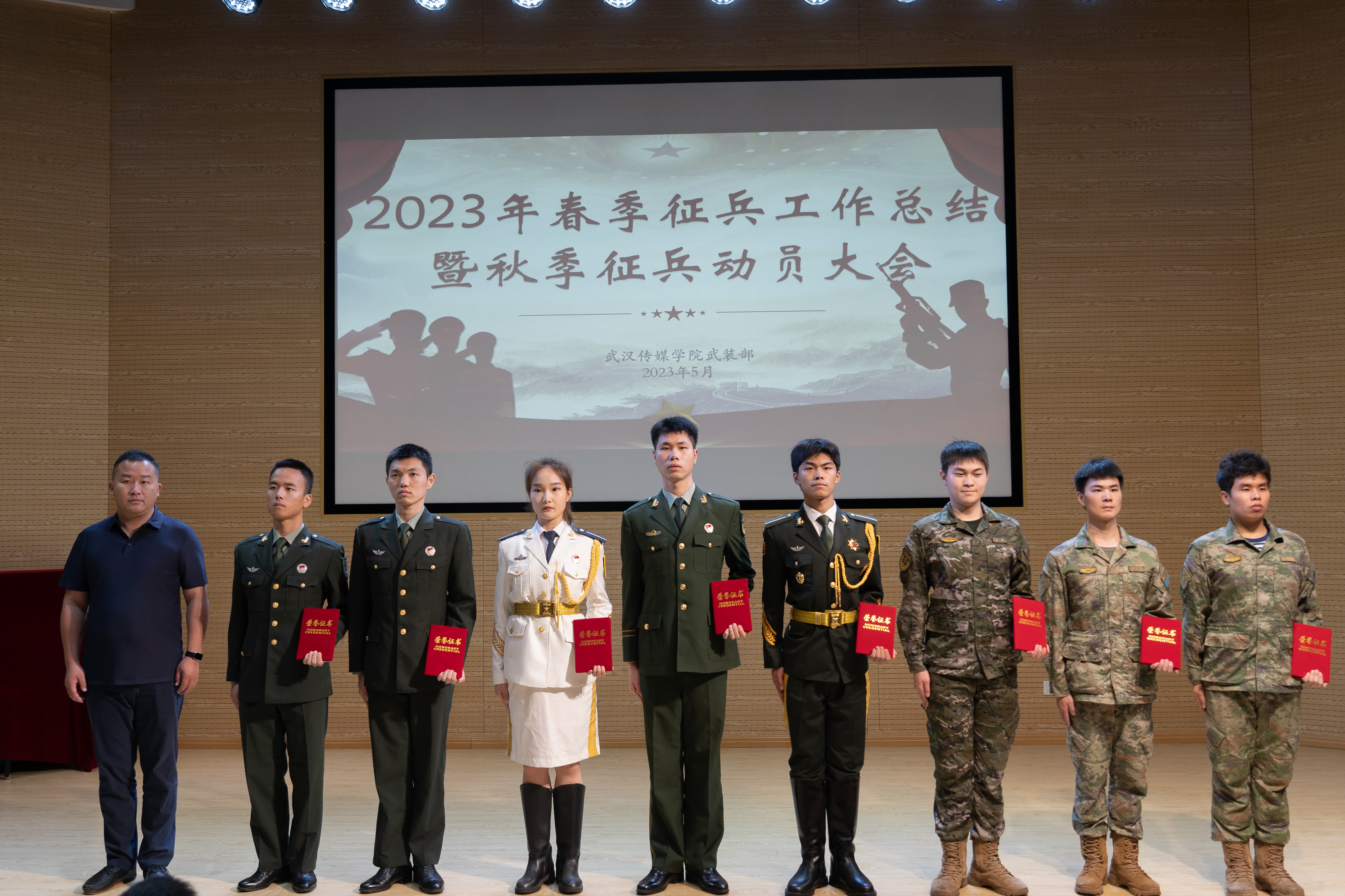 为深入贯彻落实习近平强军思想,扎实做好大学生征兵工作,我们召开了2023年春季征兵工作总结暨秋季征兵动员大会。汉南区人武部军事科科长谢非、武装部部长余恺、校团委书记瞿宗巍、学生管理科副科长李伟成、各学院团委书记、辅导员老师及学生代表参会。会议由武装部袁攀主持。