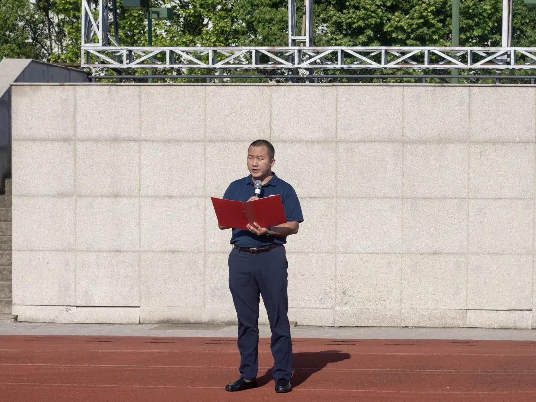 本次升旗仪式共分为五项,第一项“升国旗,奏唱国歌”全体师生行注目礼;第二项重温入团誓词;第三项优秀团干蒲鹏飞同学发言;第四项校团委书记瞿宗巍老师讲话;第五项全体师生生合唱团歌。