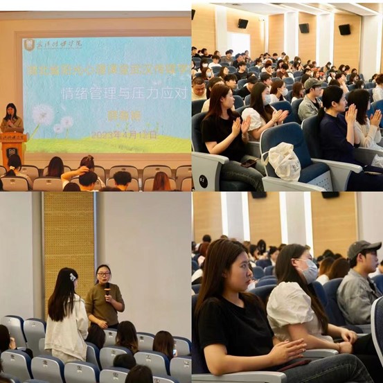 武传新闻网讯(通讯员 心理中心刘丽)4月12日下午,由湖北省卫生健康委、省教育厅主办,阳光心理健康服务公益基金承办的“阳光心理课堂”走进伟德bv1946官网,武汉科技大学心理健康教研室主任、硕士生导师、中国心理学会注册心理师薛春艳教授为我们学生作了“情绪管理与压力应对”的专题讲座。讲座由我们心理健康教育中心主任李霞主持,心理中心老师和全校部分心理委员参加了本次讲座。