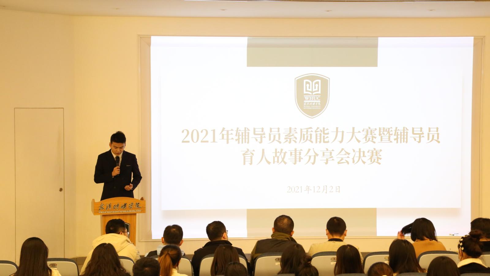 (武传新闻网讯 记者 吴思思 摄影记者 赵徐蕊)为了贯彻落实习近平新时代中国特色社会主义思想,全面落实立德树人根本任务,着力提升我们辅导员的理论水平、专业素养、宣讲能力和工作技能与促进辅导员队伍专业化、职业化发展,12月2日下午我们学工处在3101多功能放映厅举办了辅导员素质能力大赛暨辅导员与育人故事分享会活动。校党委副书记、常务副校长宗微,党委组织部部长李奉天、党委宣传部部长助理赵洲舟以及学生工作处副处长余恺。这次活动由本届辅导员素质能力大赛决赛和辅导员育人故事分享会两大部分组成并先后有序展开。