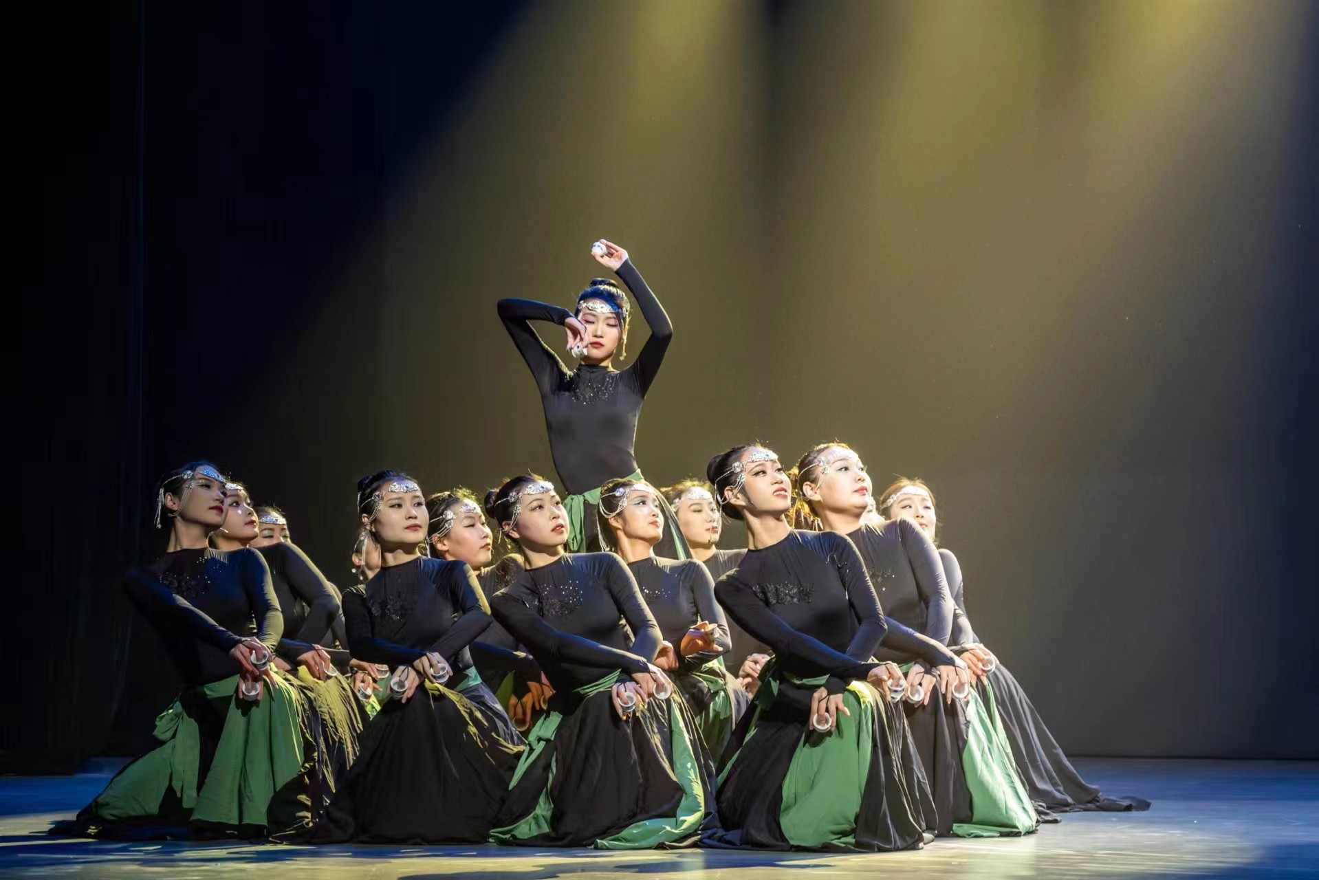 傣族舞蹈《邵多丽》,苗族舞蹈《酒妹》,土家舞蹈《土家汉子摔个起》相继出场。一风一塑,一沙一形,尘起尘落。以“轻”为主,结合极速地旋转、展开的肩部、柔美的“三道弯”以及傣族特有的嘎秧风格,舞蹈《尘朔》呈现了一种独特的美感;花腰傣族舞蹈《般般入画》表现了傣家少女初长成,憧憬未来却又含蓄,只得用心爱的笠帽遮掩的美好场景。朝鲜族舞蹈《云迹》以“云迹”映“心迹”,于呼吸之间展现出云卷云舒之意。蒙古族舞蹈《曲盅人》与《敬》,融入现代艺术情愫,内涵深蕴、形态高雅。此外,描绘出蒙古族人民驰骋草原、潇洒豪迈、草原雄鹰的性情形象的舞蹈《金色摇篮》,具有浓郁的民族风格、鲜明的地方特色和高度的舞蹈创新意识的舞蹈《连厢闹春》,也都令人眼前一亮。