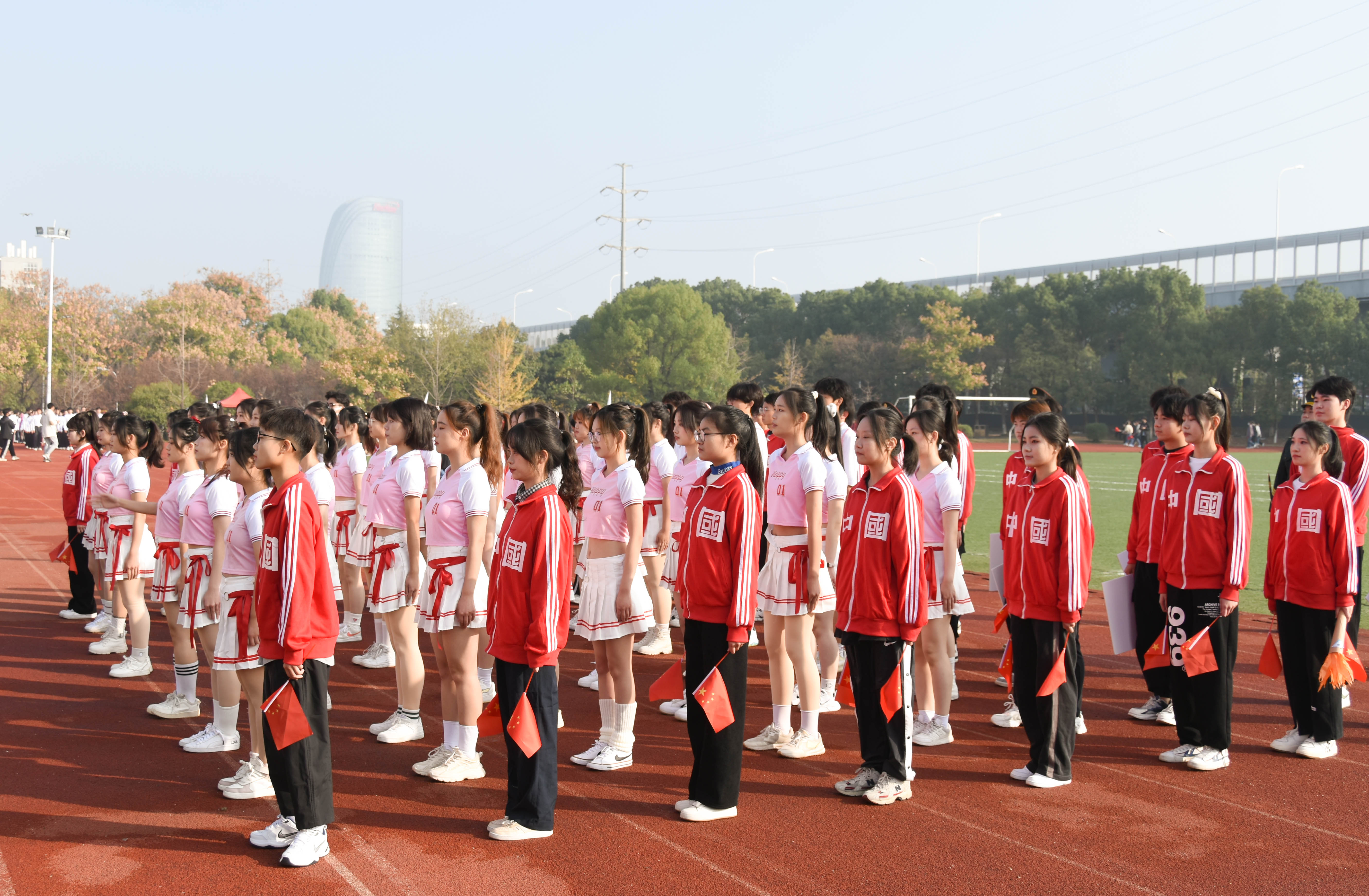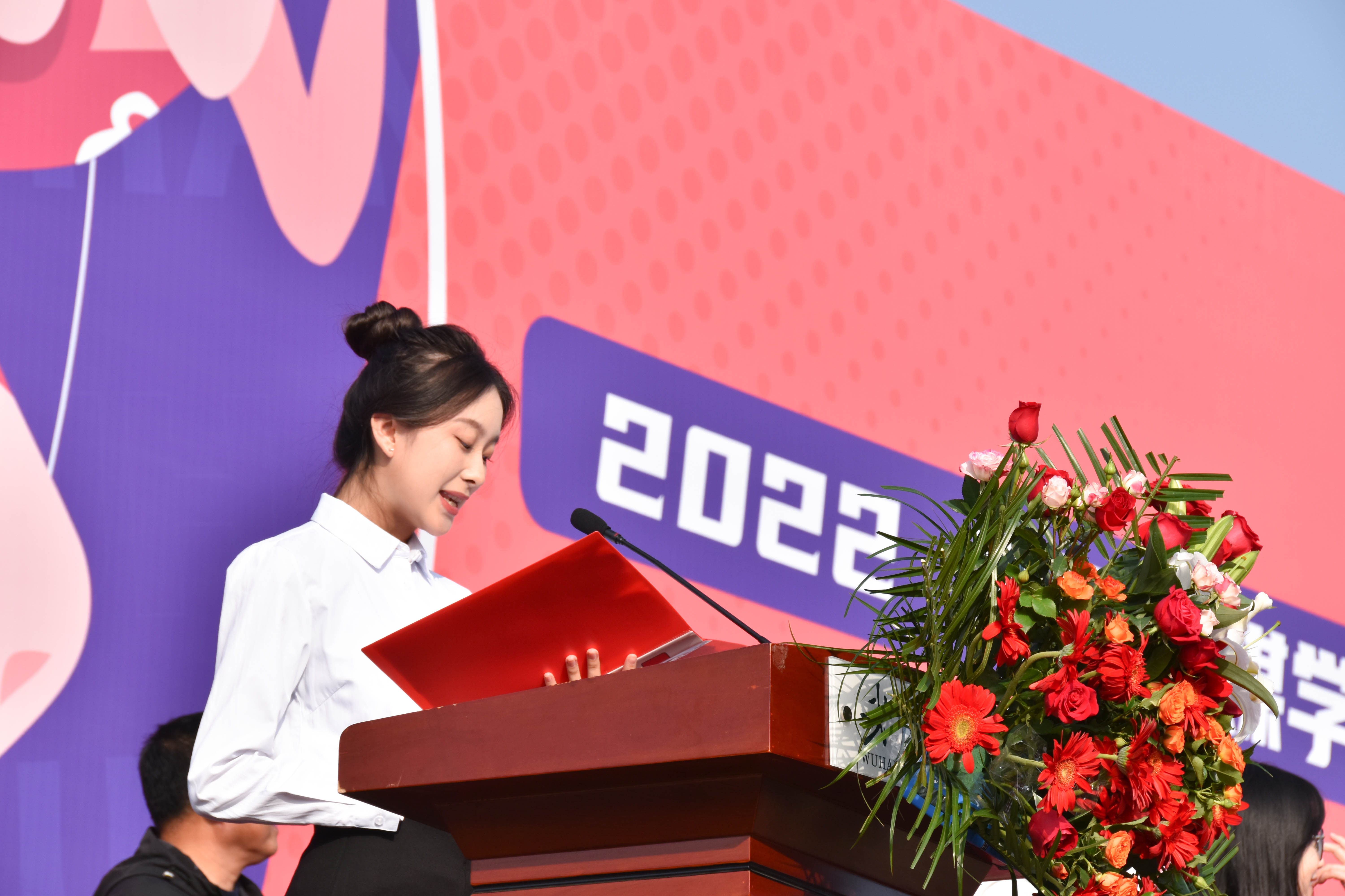 入场仪式完毕后,全场起立,高唱中华人民共和国国歌。在高昂激越的国歌声中,五星红旗在主席台旁冉冉升起,迎风飘扬。随后是宣誓环节,学生代表李秋睿、裁判员代表杨梦欣分别代表运动员队和裁判队进行宣誓,他们一致表示了对“友谊第一,比赛第二;赛出风格,赛出水平”体育精神的强调和追求。