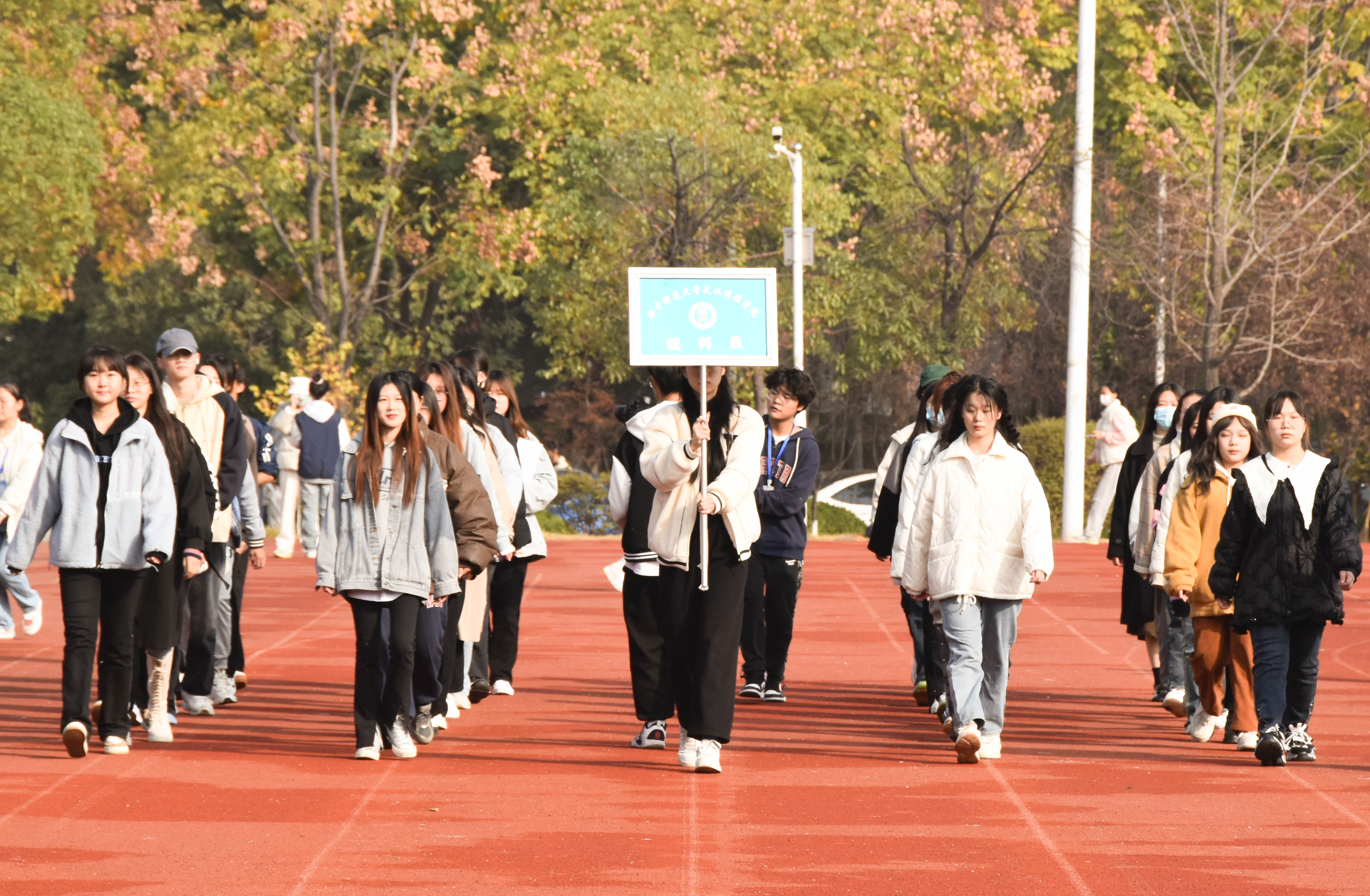 开幕式在2022级新生带来的《一起向未来》啦啦操表演中正式开始。欢快的节奏、充满活力的舞蹈,瞬间点燃了现场的气氛。开幕式表演结束后,伴随着激昂的《运动员进行曲》,入场仪式正式开始。仪仗队踏着整齐划一的步伐,护送着国旗庄重地走过主席台。随后,我们各大学院、教职工、裁判员代表队依次入场,踏着整齐的步伐依次通过主席台接受检阅。