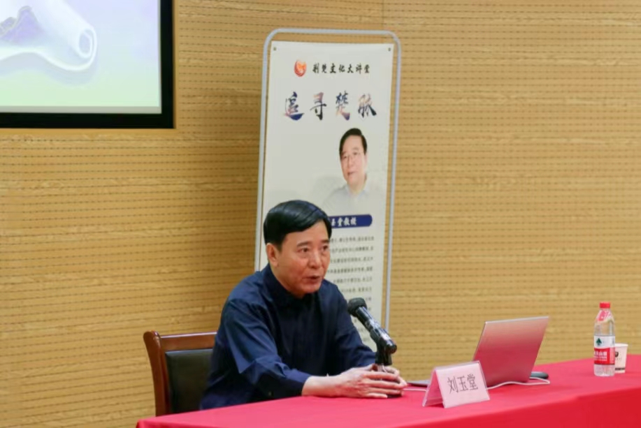 (武传新闻网讯)4月28日下午,文化管理学院荆楚文化主题研学营“荆楚文化大讲堂”第一讲在圆形报告厅开讲。首场报告是由湖北大学湖北文化建设研究院院长、湖北省社会科学院原副院长、国内著名楚文化研究专家刘玉堂教授主讲,并作《追寻楚脉》的主题报告。