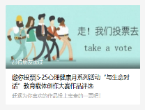 为帮助学生在新冠病毒肺炎期间调适心理状态,学会感恩生活、感悟成长、感激生命,心理中心开展了”与自己对话”微视频创作大赛、“与生命对话”教育载体创作大赛。