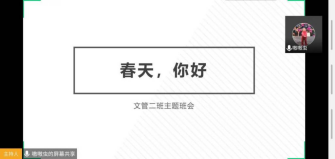文化管理学院开展了“希望唤醒春天”主题活动,通过主题班会以“趣味禅绕画”的活动形式帮助同学们树立积极健康的人生观,培养健康生活理念,让同学们了解心理健康知识,调整心态勇往直前。
