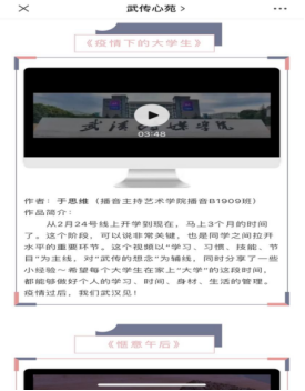 大赛进行期间,学生们踊跃参与,心理健康教育中心共计收取参赛作品59份,作品紧扣主题,从微视频创作大赛的三个主题:青春战疫、宅家上大学、云端上的美食,到教育载体创作大赛的以珍惜时间、敬畏生命、热爱生命等主题进行设计和创作,用独特的视角记录生活,用精彩的文字感动心灵。经过严格的初选以及决赛的投票评分后,18份参赛作品最终获奖。