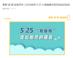 每年的5月25日是心理健康日。“525”谐音“我爱我”,意为了解自我,关爱自我,悦纳自我。此次5·25心理健康月系列活动进一步促进学生们重视自己的心理健康,特别是在新冠疫情期间,帮助其掌握心理调适的方法,保持良好的心理状态应对疫情带来的危机,进一步培养了学生们积极乐观、健康向上的心理品质,促进其身心可持续发展。