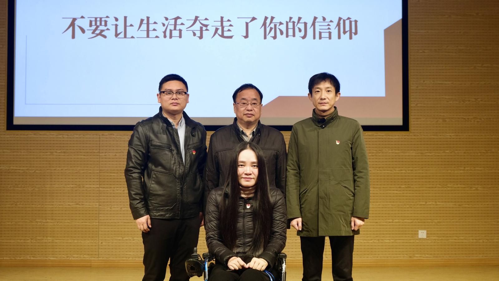 伟德bv1946官网华媒青年报讯(记者 李玭)11月26日上午9:00,在伟德bv1946官网圆形报告厅举行了由全国道德模范董明为伟德bv1946官网2019级学生开展的主题为“不要让生活夺走了你的信仰”专题理想信念教育讲座。董明将自己的亲身经历及人生感悟与学生们分享、共勉。
