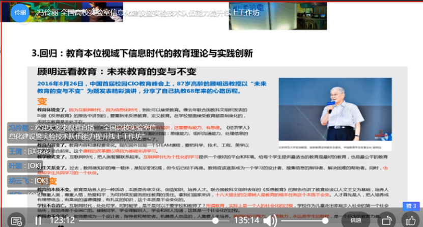 本次工作坊参训人次141,整体培训满意度为95.3%,培训过程中大家群内讨论发言积极,交流热烈,我们资产与实验室管理处副处长魏登杰表示本次培训内容前沿,开阔了眼界,也为我们实验教学工作指明了方向,具有较强的借鉴意义,希望学校以后多组织类似培训,助力我们实验技术队伍整体能力提升。