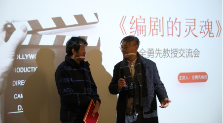 活动伊始,王瀚东为全勇先颁发“客座教授”证书。他表示,如果把电影、电话剧比作少女,那么演员、导演是她的外衣,而真正的她的美好心灵是靠编剧来完成的。