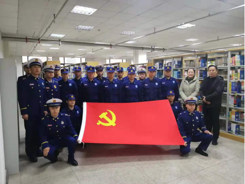 2019年11月28日下午,武汉市东湖高新区消防救援大队在我们图书馆开展党员主题教育交流学习。校保卫处和图书馆负责人进行了热的接待,并在图书馆三楼共同学习交流通红色书籍。大队党员代表认真学习并做好相关笔记,交流结束后大家共同合影留念。