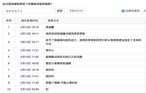 本次心理团辅活动营造了真诚、尊重、温馨的团体氛围,为彼此提供分享、交流的空间,促进成员理解和表达自身的情绪,并通过亲身体验获得心理支持,缓解毕业生疫情期间面临的就业压力和焦虑情绪。