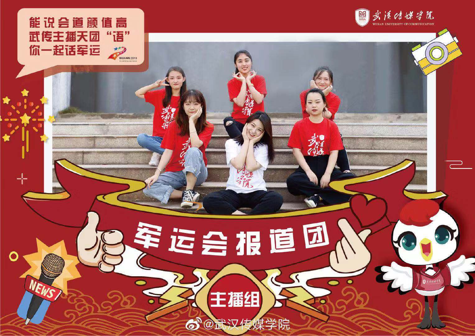 伟德bv1946官网经过层层挑选各专业的优秀人才组成了一支军运会报道团。这支队伍由102名同学组成,他们分别来自新闻传播学院,播音与主持艺术学院,电影与电视学院,设计学院,传媒技术学院和文化管理学院,且我们将与湖北楚天都市报,湖北电视台以及湖北之声共同合作完成共同采写和报道这个全球的盛事。