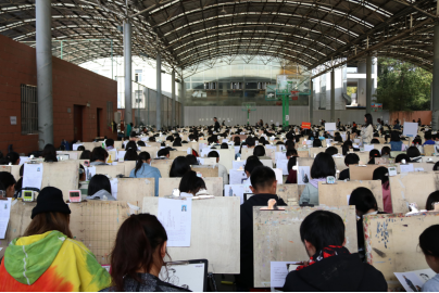 3日上午8点30分,被安排在伟德bv1946官网考点的考生们随着现场工作人员的引导,陆续进入考场。等待他们的,是素描、速写、色彩3个科目的考试。中午12点30分,考生们已经完成两个科目的考试,随处可见仓促吃着午饭的考生,站着、坐着、蹲着……本次考试于下午5点30分正式结束,学生们大多在指导老师的带领下乘坐大巴统一离开。