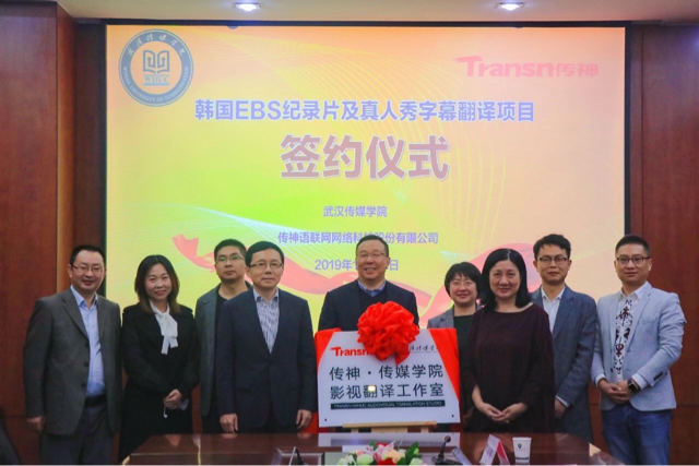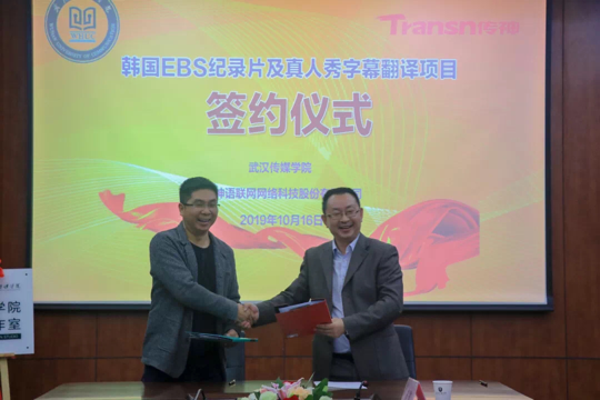 举行揭牌仪式后,张华总经理和洪俊老师当即签约了合作项目。首次合作项目是长达70个小时的韩国EBS纪录片及真人秀字幕翻译项目工作。据现场报道,这是传神公司第一次这么迅速快捷放心的把项目落实到高校。这么大的项目也是挺让人惊叹的,直接现场签约落定。现场的参会人员均满怀激动的心情见证了这一时刻。活动的尾声,大合照宣告着活动圆满结束。其中不得不提的是此次参与揭牌仪式的洪俊老师,从2007年在校任教写作教学工作,直到2017年开始转向影视翻译方向工作。在2019年的军运会文化交流活动中,更是参与了“同城一碗面”的翻译工作。看似简单的一次工作转变,实则暗藏着很多的困难。虽然说英语之间都是互通的,但是这对于老师的功底也是有考量的,从对文字的把握,到对文化底蕴的理解,一次次的过程都是经验的积淀。