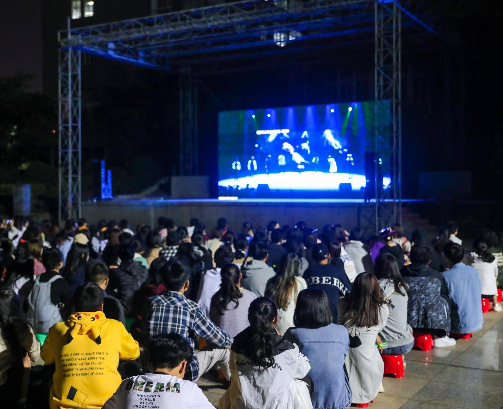 据了解,本次晚会迎新晚会首次后广场开通了大屏幕同步直播,晚会时总共有837名学生到场,他们凭借老师带队,扫描二维码的方式有序进入场地,与真正到达会场的同学们一起享受新生晚会。