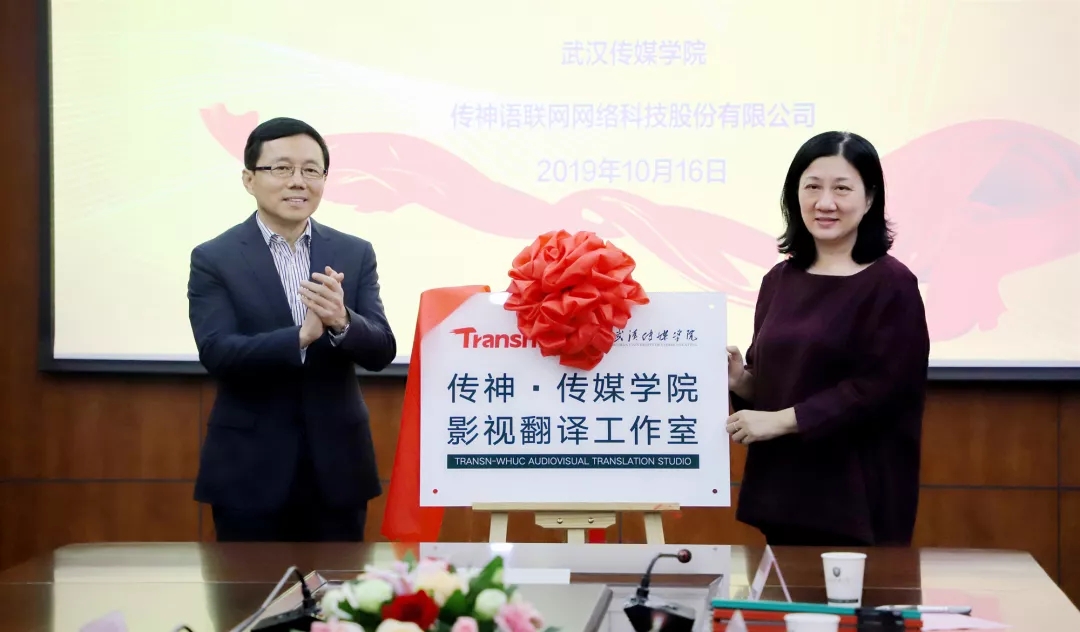 (武传新闻网讯(文/记者 李思睿 见习记者 刘昊欣 田苗薇 余汶娟 )10月16日上午,我们传神·传媒学院影视翻译工作室在行政楼205会议厅举行揭牌仪式。来自传神语联网网络科技股份有限公司常务副总裁傅强、事业发展中心高校部总经理张华、质控师李云霞,和我们常务副校长宗微、教务处处长姜虹、人文与艺术学院院长刘军平、人文与艺术学院党组织书记吴斌、英语系主任黄敏、影视翻译工作室负责人洪俊出席了此次揭牌仪式。