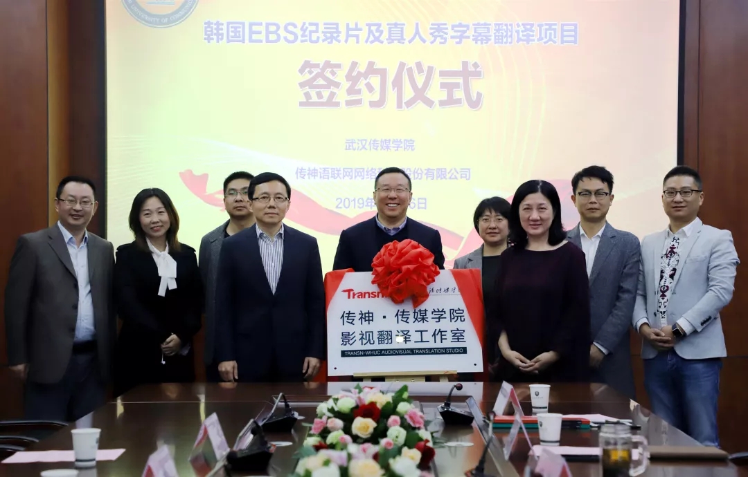 致辞结束后,我们常务副校长宗微和传神常务副总裁傅强共同完成揭牌仪式,传神·伟德bv1946官网影视翻译工作室宣告正式成立。揭牌仪式后,我们英语系主任黄敏与传神语联网网络科技股份有限公司事业发展中心高校部总经理张华签订了关于韩国EBS真人秀翻译项目的协议。最后,全体参会人员一起合影留念,仪式圆满结束。