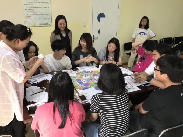游戏开始前,游戏认证教练非常详细地讲解游戏规则,科普经济学词汇,指导记账方法,认清游戏棋盘。游戏棋盘由外圈-内圈-核心圈组成,玩家先在外圈游戏,达到一定条件才能进入内圈(核心圈),每一圈内都通过不同内容的“命运”“机会”“风险”的卡牌来模拟漫漫人生路,玩家需要尽一切可能从外圈进入内圈,从而进入核心圈,实现人生的财富自由。游戏分三组同时进行,9人一组,每组由一位受过专门训练的银行家来主持游戏,游戏持续3小时,每小时代表10年人生,玩家们需要经历人生中的20到50岁。同学们非常认真地做笔记,积极踊跃地思考和提出问题,一个个都跃跃欲试想开始自己的“人生之旅”。