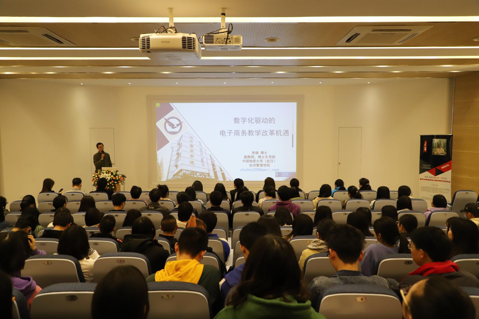 武传新闻网讯(文/见习记者 朱敏荣 图/摄影见习记者 梁嘉雍 卢丽雅)3月21日下午,中国地质大学(武汉)经济管理学院朱镇副教授来到我们,于3101多功能放映厅开展“数字化驱动的电子商务教学改革机遇”主题讲座,同我们师生畅谈交流。