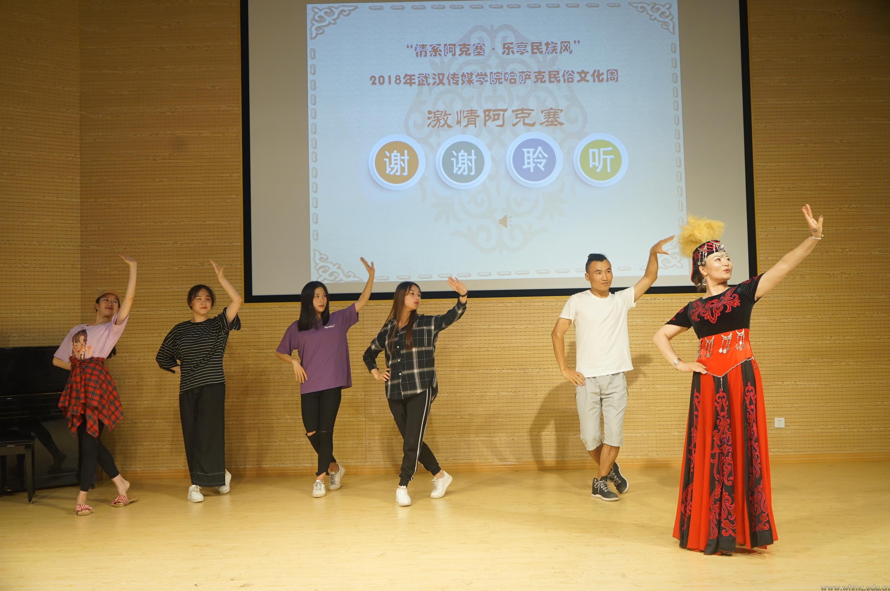 当晚,在悠扬的民族歌曲中,哈萨克族非物质文化遗产舞蹈“卡拉卓尔哈(黑走马)”专题讲座在圆形报告厅拉开序幕。讲座主讲人哈利木剑苏永木汗和巴合提剑讲述了哈萨克族近代历史文化艺术、卡拉卓尔哈(黑走马)的传说、哈萨克族特色舞蹈艺术特点和申请非物质文化遗产的过程。活动现场还展示了传统乐器冬不拉,并邀请学生尝试弹奏,领略冬不拉独特的魅力。随后,巴合提剑演示了哈萨克族特色舞蹈,带领师生学习卡拉卓尔哈(黑走马)。
