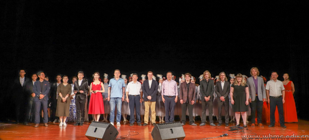 我们人文与艺术学院学生们带来了中国风十足的二重唱《黄埔江深》、古筝三重奏《汨罗江上》和舞蹈《白羽清歌》。其中,2014级音乐专业学生黄迪身穿黑袍手拿红色折扇,动情演绎了一首流行音乐与民族元素相结合的《悟空》,赢得在场观众连连叫好。最后音乐会在活力十足的藏族舞蹈《啊啧啧,安多喜姆》中结束。